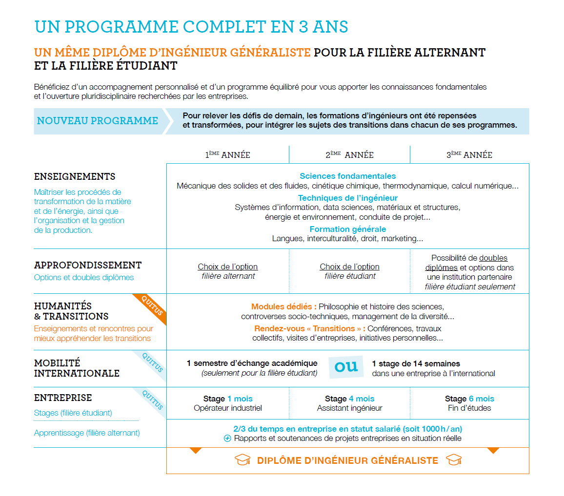 La formation d'ingénieur est très généraliste comme promis ! Le choix d'option dès la première année à l'école (en filière alternant) permet d'aborder des sujets relatifs à notre entreprise de manière plus rapide et efficace. L'apprentissage en devient plus concret et donc motivant !"